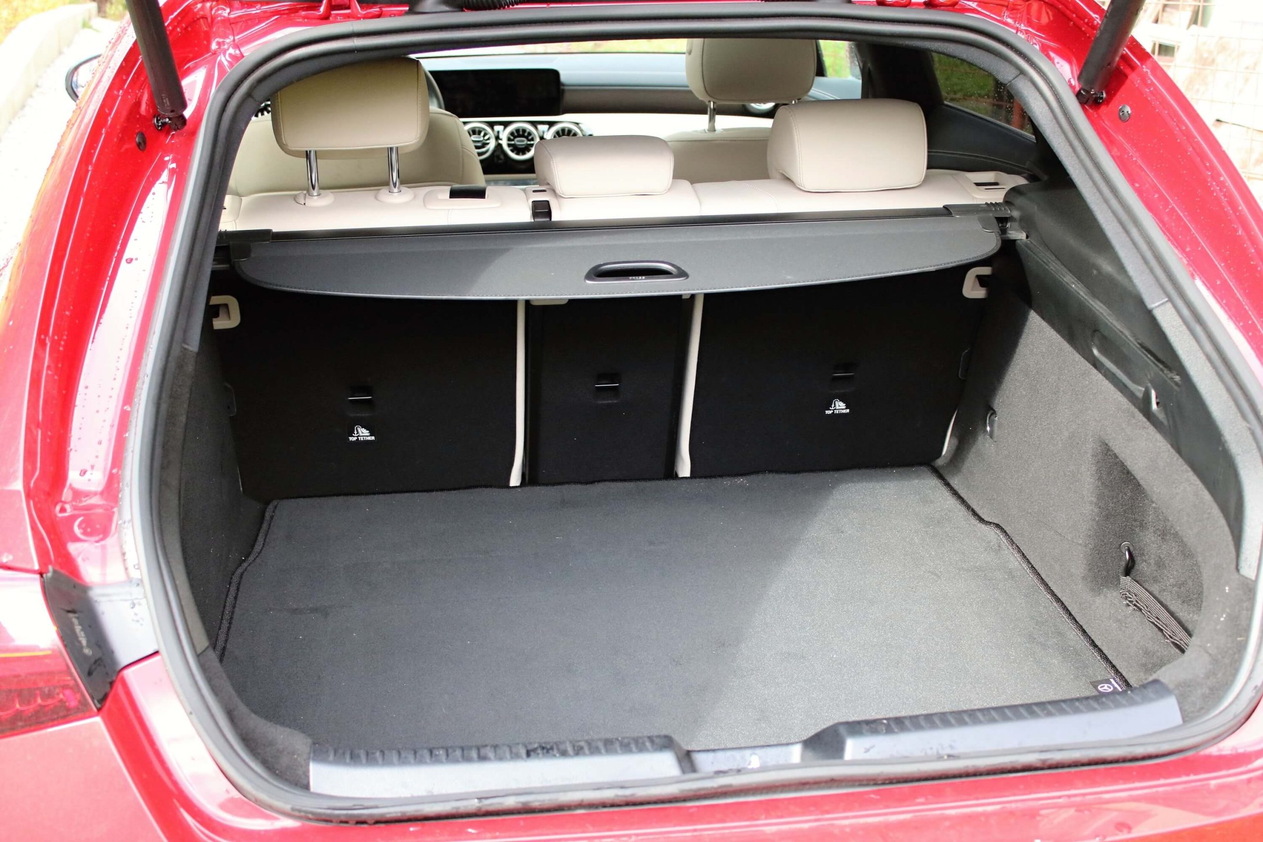 Mercedes-Benz CLA Shooting Brake má sklápacie operadlá sedadiel vzadu, čo zväčší objem batožinového priestoru až na 485 litrov. Piate dvere – zadné výklopné dvere Easy Pack s elektrickým otváraním a zatváraním zvyšujú komfort nakladania a vykladania batožinového priestoru. Od kombi sme však čakali viac. Pozitívne hodnotíme delenie zadných sedadiel v pomere 40:20:40, čo ocenia najmä lyžiari. Po sklopení stredného sedadla totiž získate skvelý priestor na prepravu dlhých predmetov.